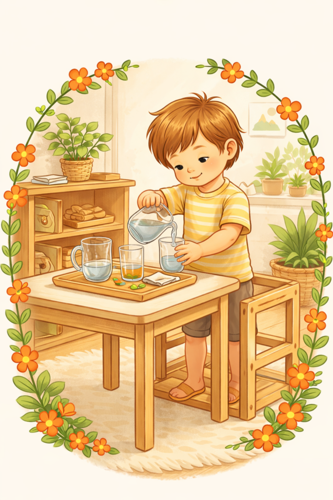 Genau deshalb sind Montessori-inspirierte Aktivitäten in diesem Alter so wertvoll. Sie setzen nicht auf möglichst viel Reiz, möglichst viel Spielzeug oder möglichst viel Abwechslung. Stattdessen helfen sie Kindern dabei,