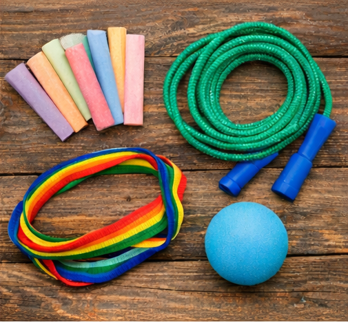 Wenn Ball, Kreide oder Seil an einem festen Platz liegen, werden solche Spiele im Alltag viel wahrscheinlicher.